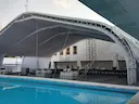 Fabricada en lona de pvc blanca y estructura de aluminio.