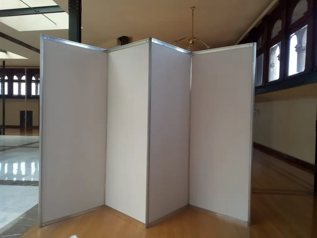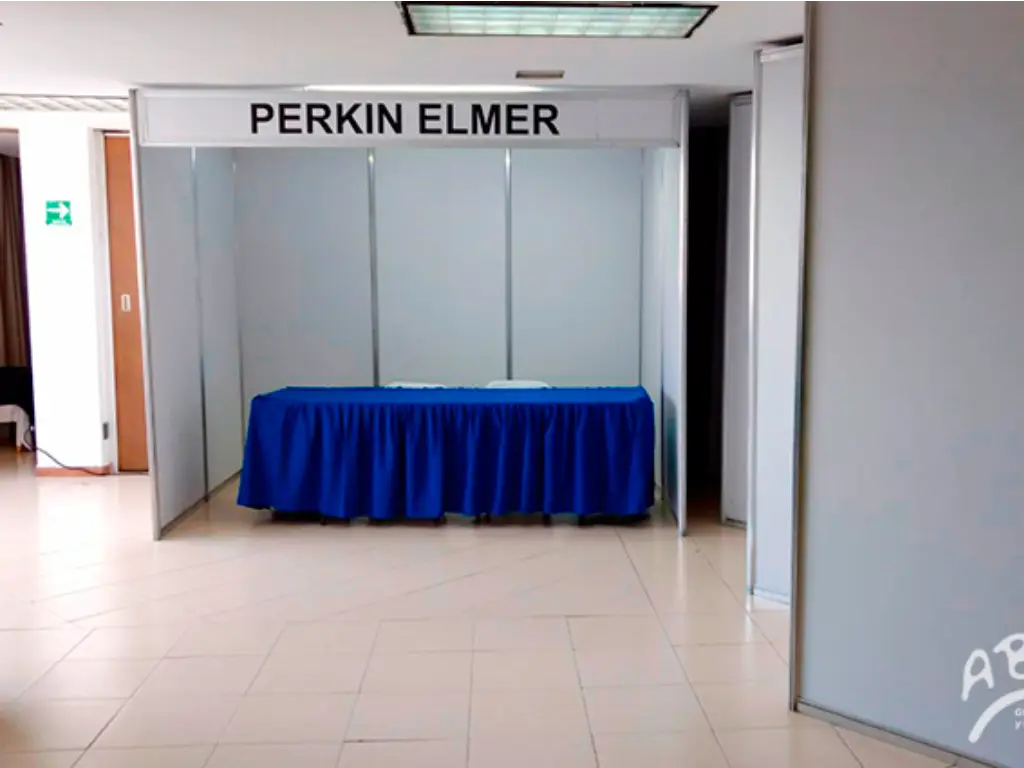 - Stands en mampara MDF color blanco, incluye marquesina y contacto doble.